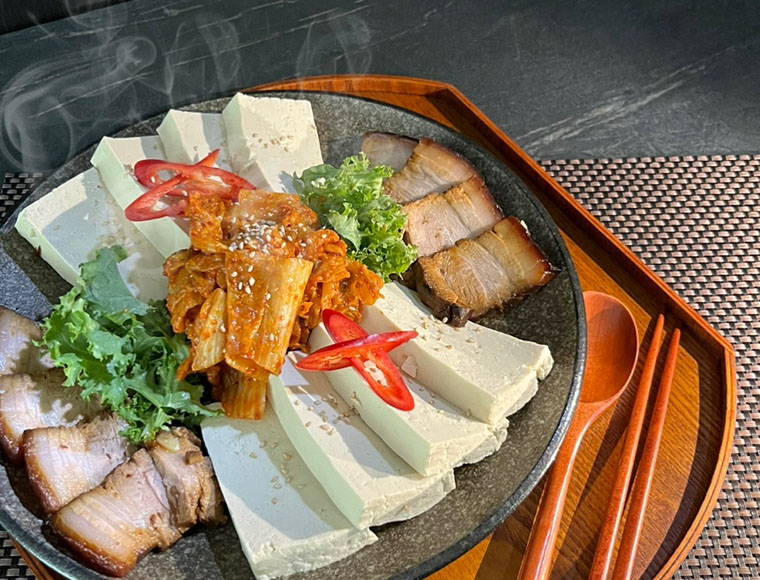직접 삶은 수육과 볶음 김치를 넣어 만든 두부 김치
