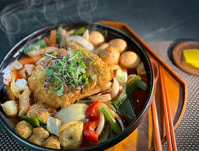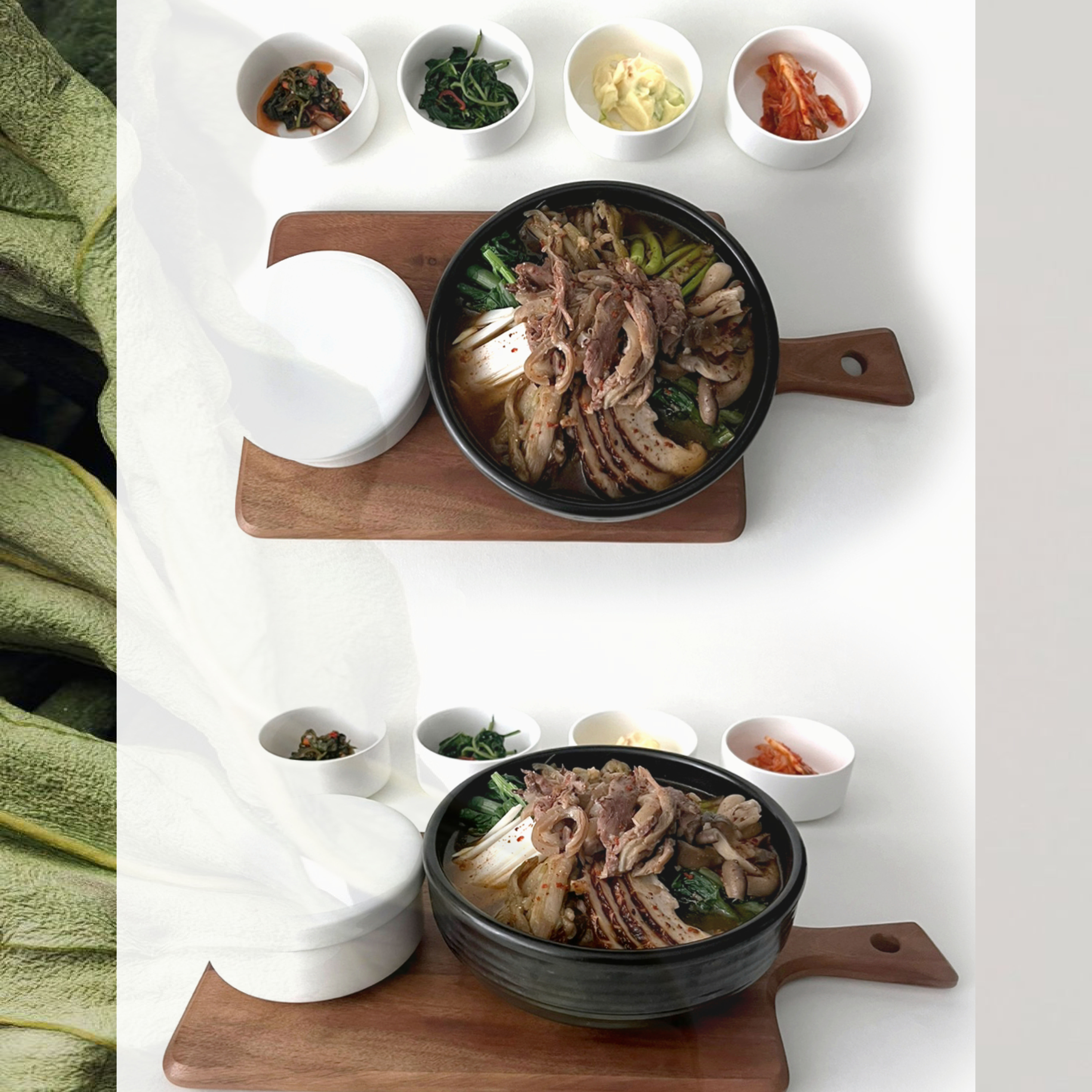 한식 스타일의 돌솥밥과 구수한 된장찌개를 곁들인 세트메뉴