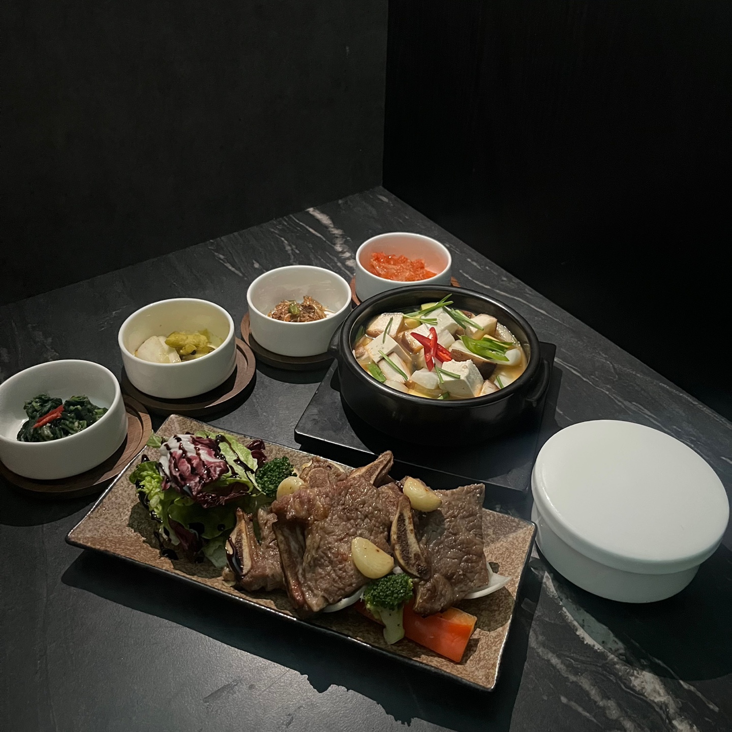 부드러운 양념 소갈비와 된장찌개를 즐기실 수 있는 한상.