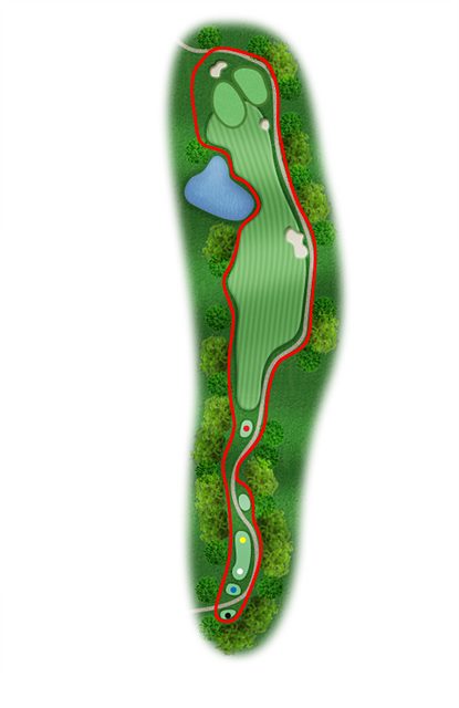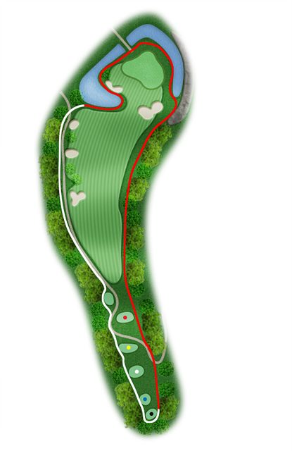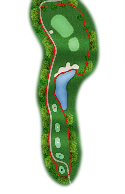 폰드를 넘기는 숏 홀. 자칫 길어지면 뒤의 크리크를 만나게 된다. 폰드와 좌측 벙커가 부담스러우며 그린 공략은 핀 위치에 따라 정확한 공략이 요구된다.
